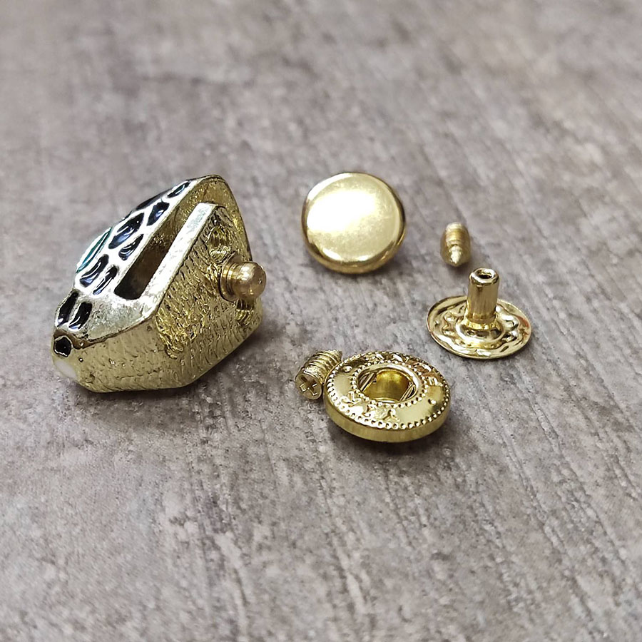 Металлический декоративный замочек в виде головы змеи для галантерейных изделий - сумок, кошельков, портфелей и пр. Такая фурнитура подойдет не только для кожаных изделий, но и для текстильных, вязаных, валяных сумок.