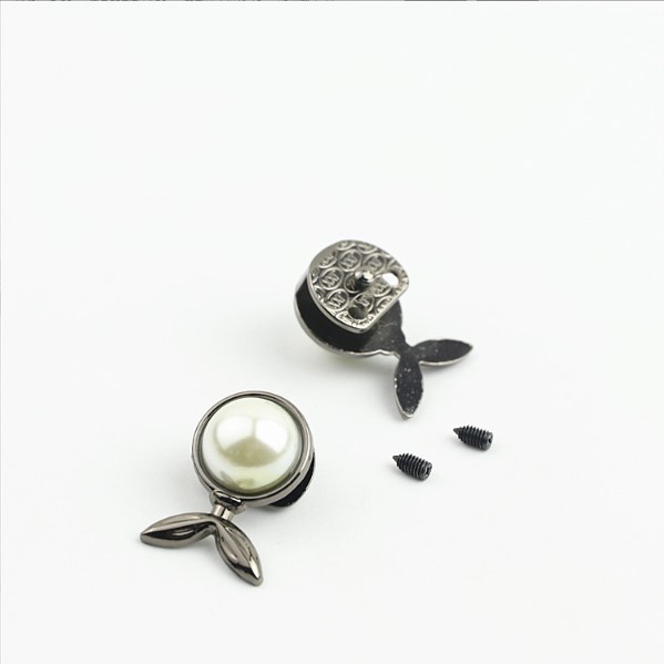 Металлический декоративный замочек с полубусиной-жемчужиной в форме яблочка с листиками для галантерейных изделий - сумок, кошельков, портфелей и пр. Такая фурнитура подойдет не только для кожаных изделий, но и для текстильных, вязаных, валяных сумок.
