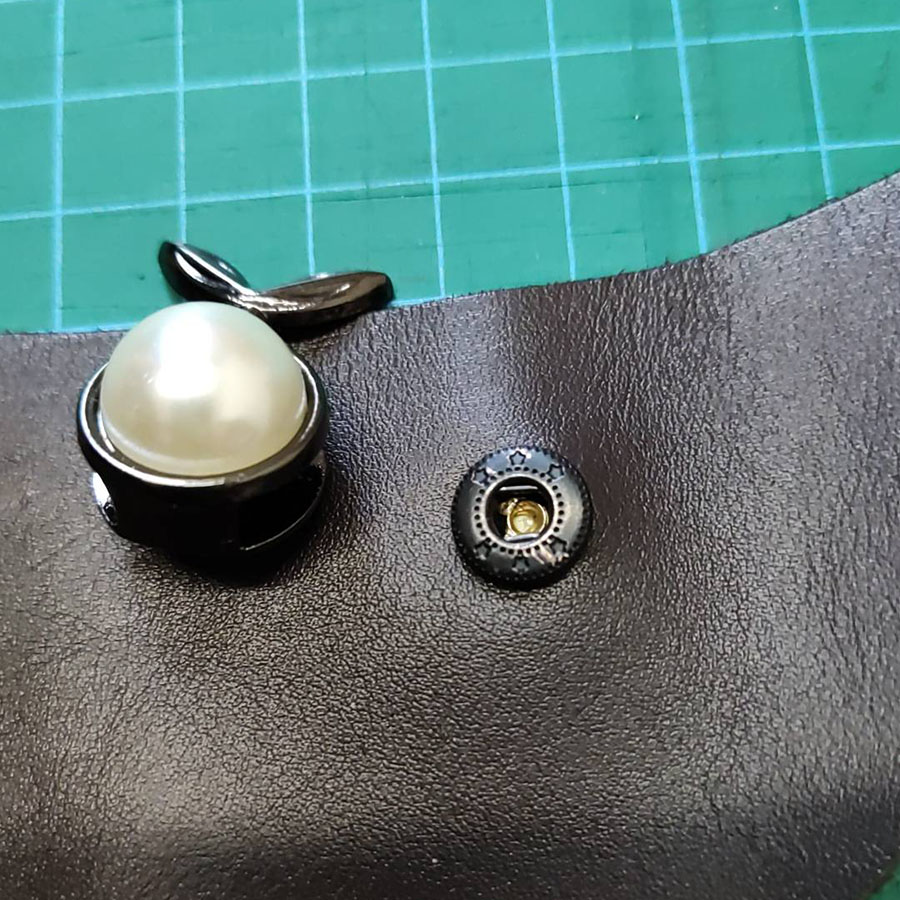 Застежка крепится на изделие как "шляпка" кнопки (имеет штырек, который подходит к нижней части стандартной кнопки) идет в комплекте с латунной кнопкой 10 мм №655 под золото или черного цвета, соответственно. На дополнительных фото можно посмотреть пример установки.