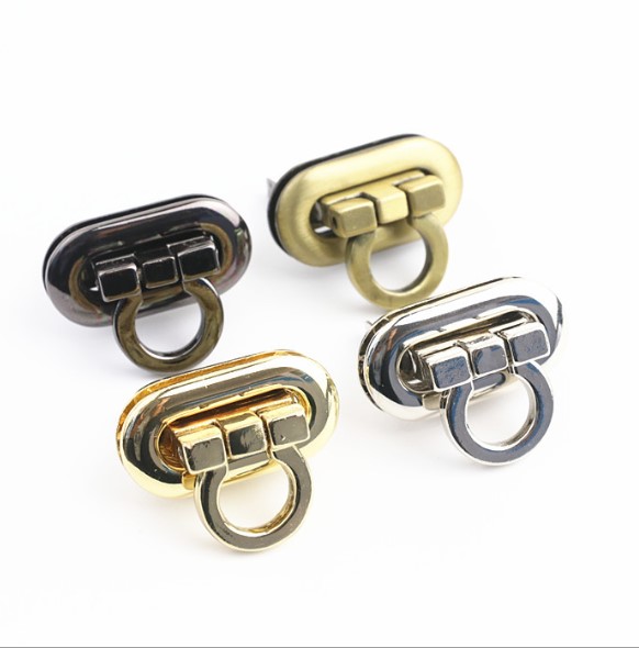 Металлическая декоративная застежка-клипса для сумок поворотного типа, с "колечком". Цвета под золото, серебр/никель, темная латунь, черно-серый.