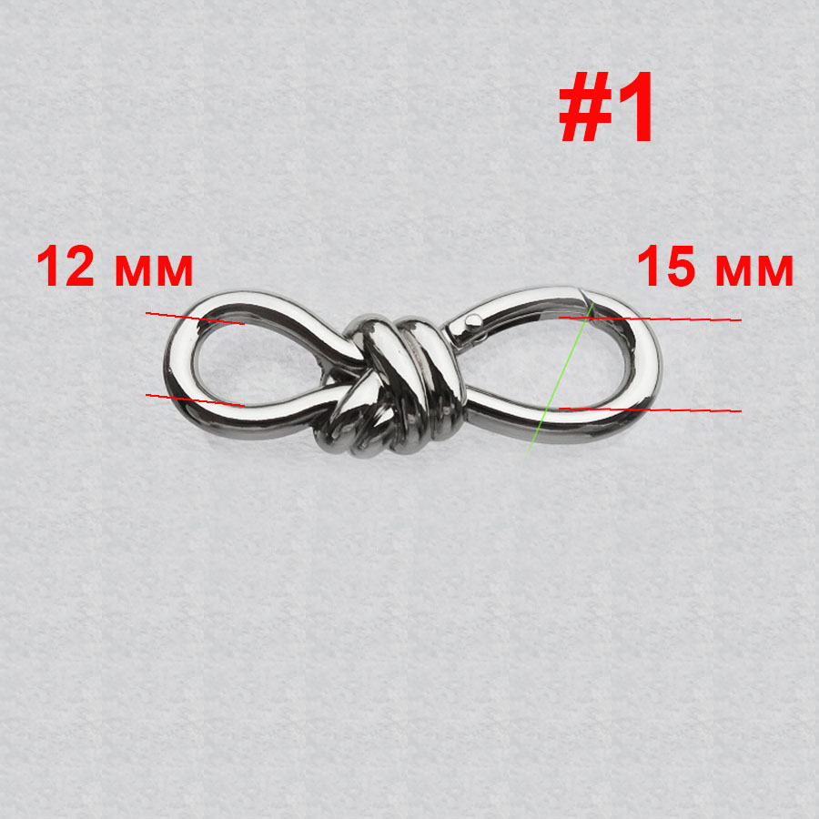 #1 - в виде цифры "восемь" с карабином. Размер 75х25 мм. Толщина прутка 5 мм
