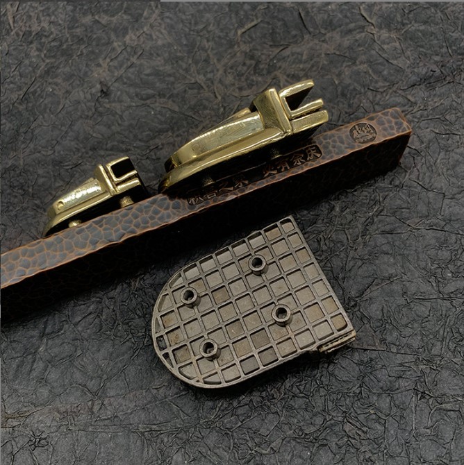 Место крепления защелки большой застежки 38 мм. Внешние размеры застежки: длина 48 мм, ширина 38 мм (75 г)