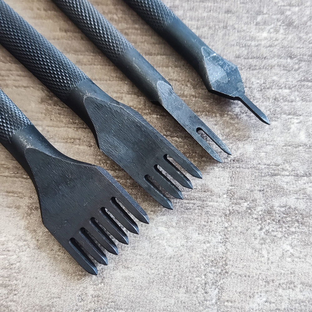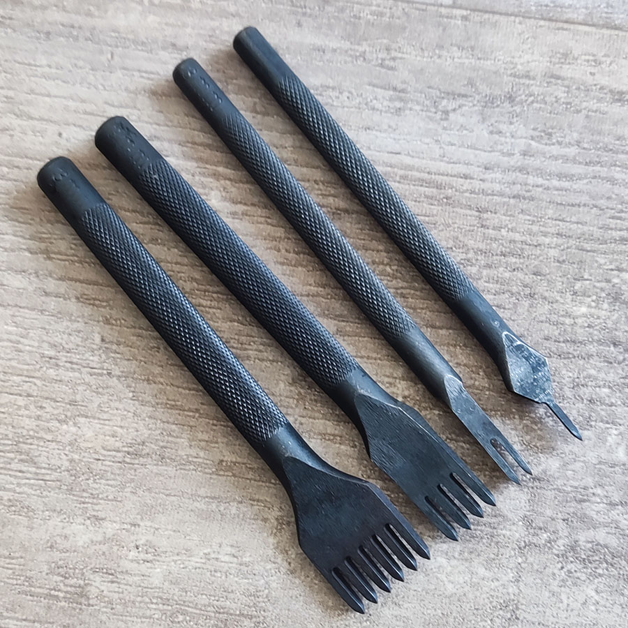 Строчные шаговые пробойники предназначены для пробивания аккуратных и равно удаленных друг от друга отверстий под шов в коже.
