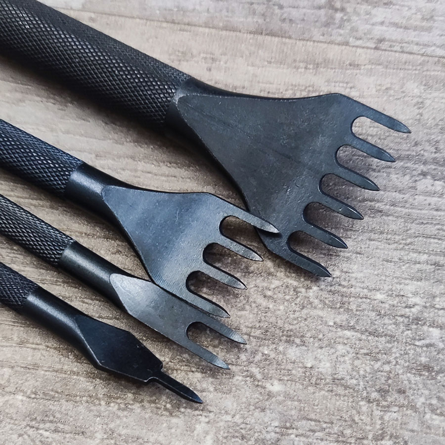 Строчные шаговые пробойники предназначены для пробивания аккуратных и равно удаленных друг от друга отверстий под шов в коже.