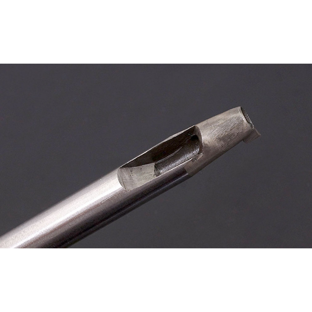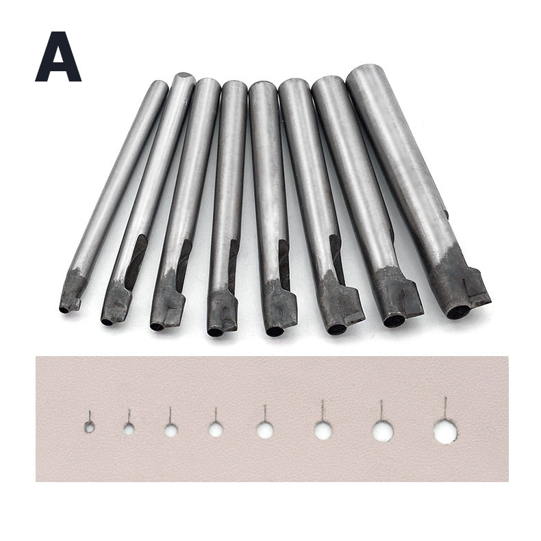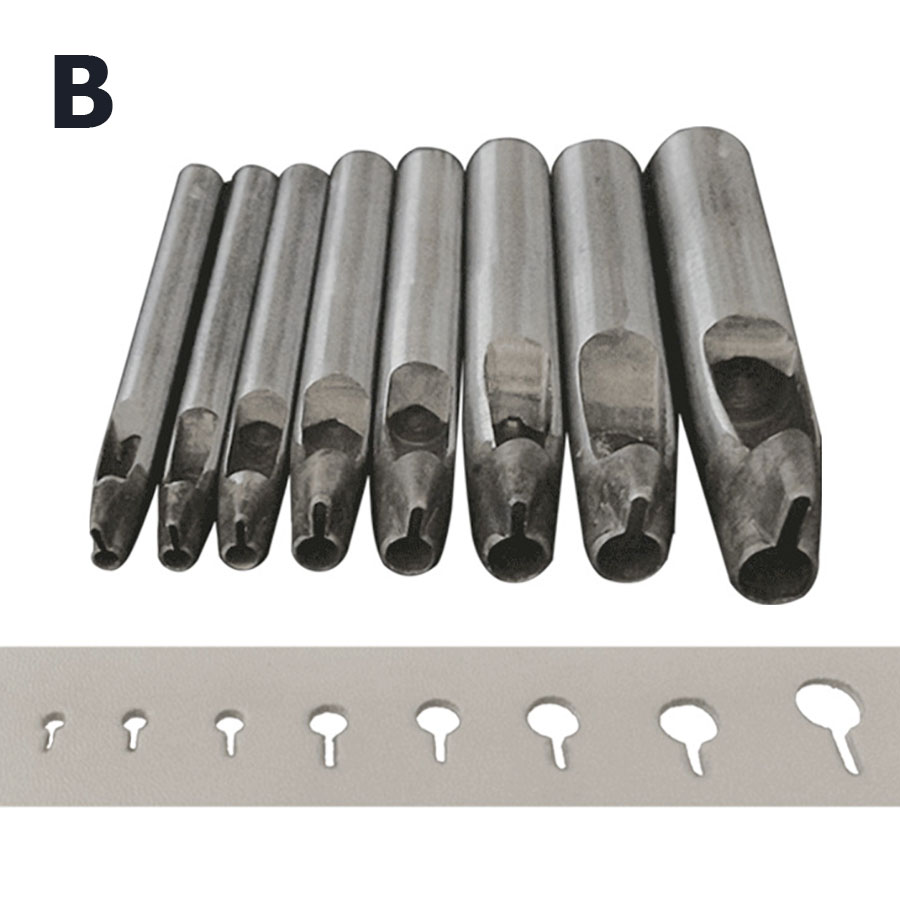 В специальных пробойниках для кобурных кнопок точно рассчитано соотношение диаметра отверстия и длины ножки, это поможет избежать ошибок при ручном прорезании отверстий и значительно ускорят процесс работы. Чтобы правильно подобрать пробойник под размер кобурного винта нужно учитывать, что диаметр отверстия должен быть меньше головки (шарика) винта в 1.5-2 раза, т.к. винт входит в отверстие не только благодаря круглому отверстию, но и за счет вертикальной насечки. Чем тоньше и мягче кожа, тем больше должна быть разница между диаметром отверстия (пробойника) и диаметром головки кобурной кнопки.