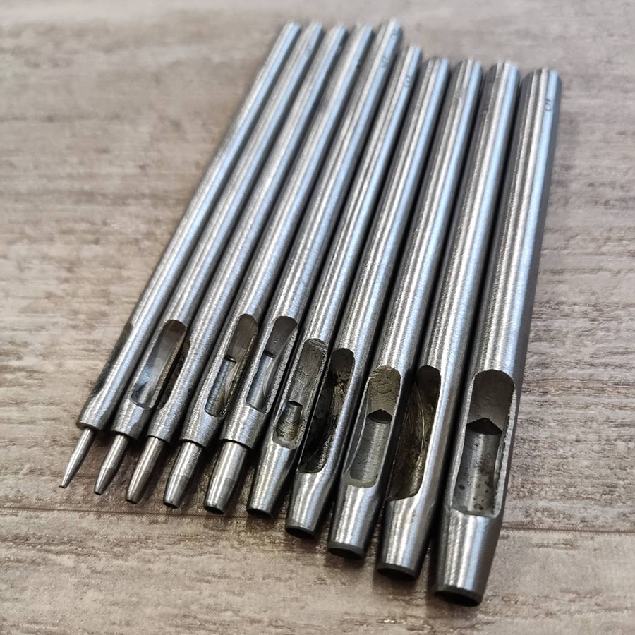 Пробойники ручные круглого сечения для кожи и других плотных материалов - 10 штук.
