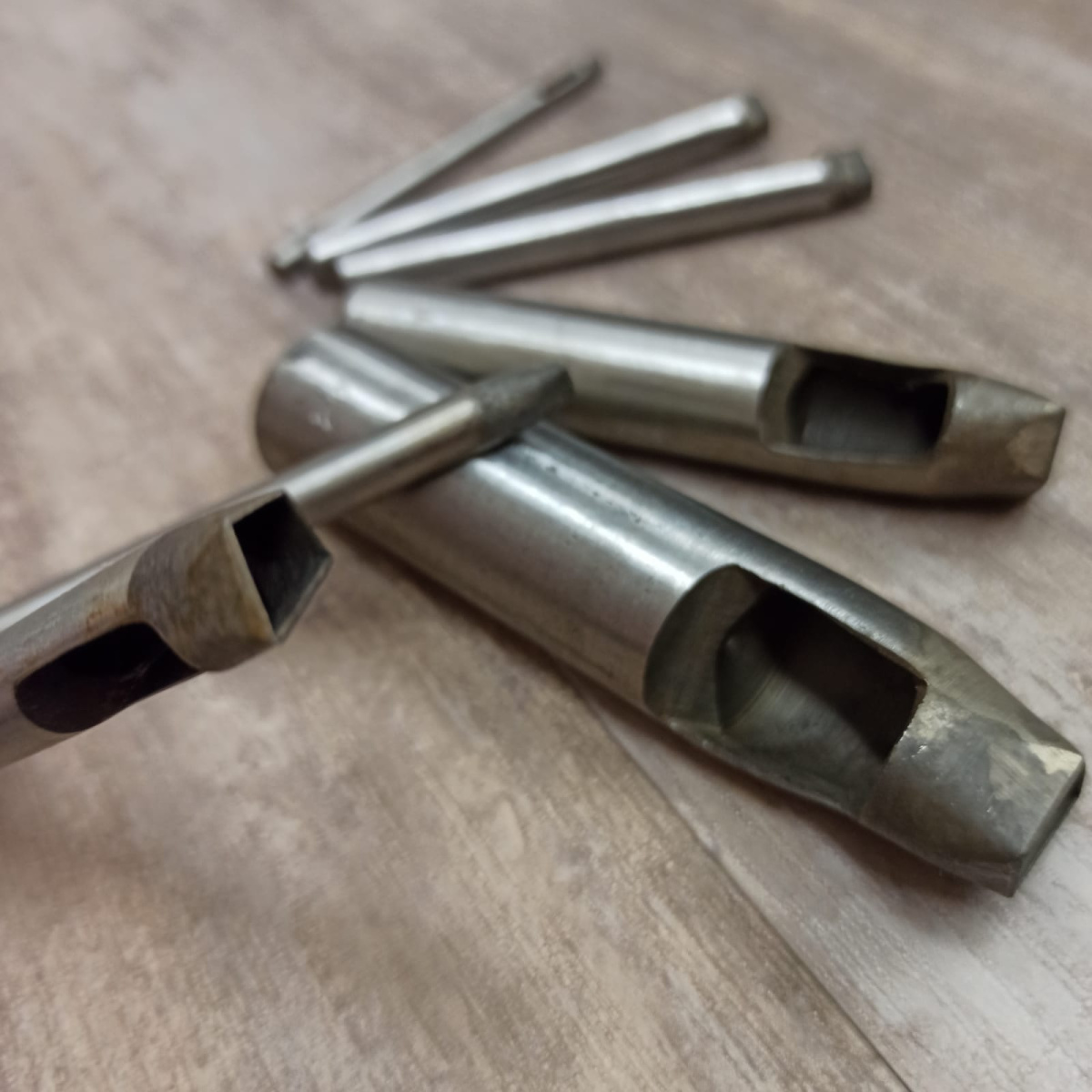 Пробойники фигурные разных размеров, пробивают отверстие в форме призмы. Пробойники (просечки) часто используют при изготовлении кукольной обуви, ремней и других галантерейных изделий с декоративными отверстиями
