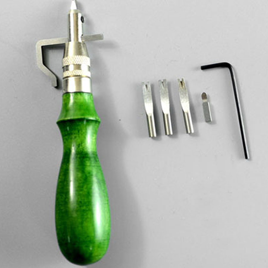 Качественный многофункциональный канавкорез (торцбил) с зеленой деревянной ручкой.