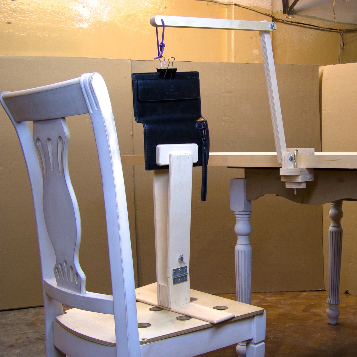 Клешня - держатель с креплением к столу, служит для удерживания больших изделий при шитье с использованием шорника.