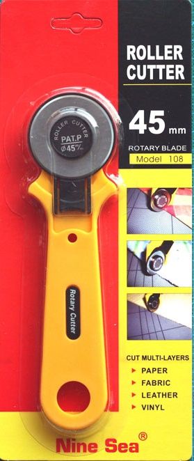 Раскроечный дисковый нож с лезвием диаметром 45 мм. Такой раскройный (роторный) резак легко разрезает несколько слоев ткани, бумаги, фетра, применяется для работы с кожей и другими материалами. Имеется защитная функция для безопасного хранения вне использования. Лезвия сменные. Лезвия к ножу для кроя также можно купить в нашем магазине