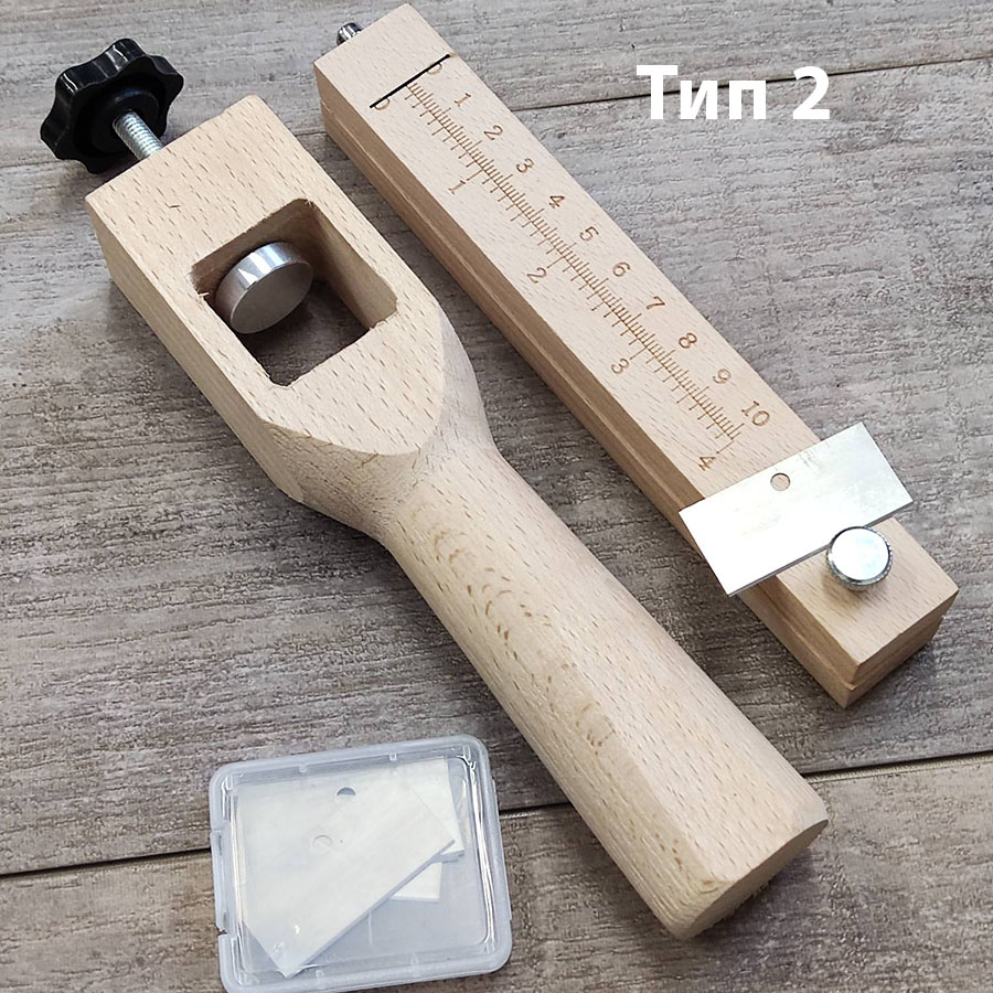 Тип 2. Размеры элементов: 21,0х4,0 см и 17х2.5 см, 5 сменных лезвий без вырезов, вес 210 гр
