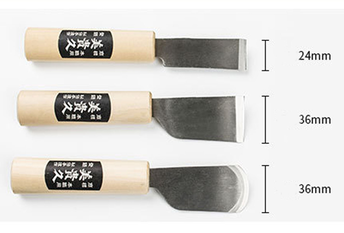 Профессиональные фирменные ножи для истончения мездры и краёв кожи. Ручка из качественной древесины, лезвие из японской стали с хорошей заточкой.