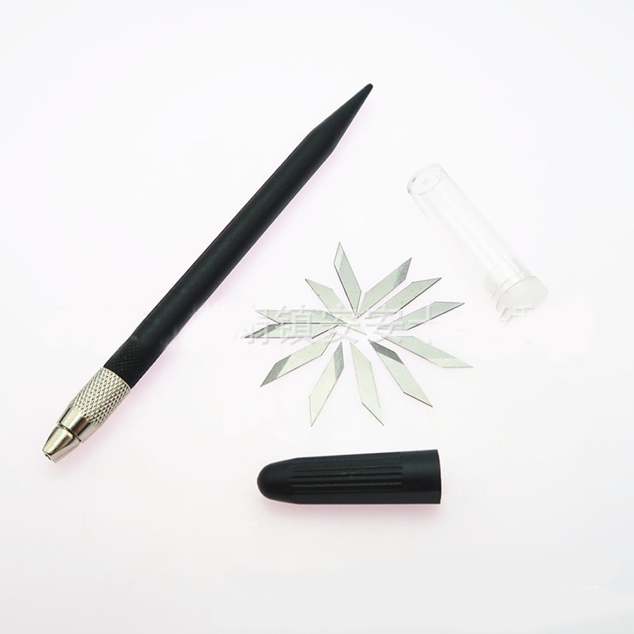В набор входит ручка-держатель, 12 съемных лезвий , а также удобный пластиковый контейнер для хранения лезвий.