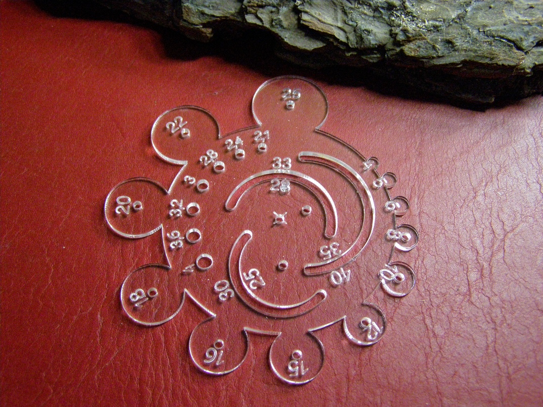Удобная линейка для разметки окружностей при раскрое, скруглить углы на кошельках, обложках или просто разметить отверстие. Отлично подойдет для раскроя кошельков, сумок и других изделий из кожи.