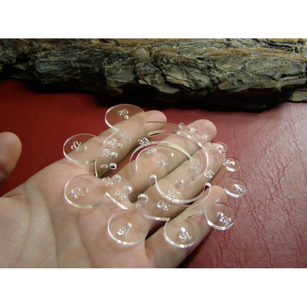 Толщина акрила составляет 3мм, что создаёт возможность работать роликовым ножом, а также обеспечивает прочность лекалу.