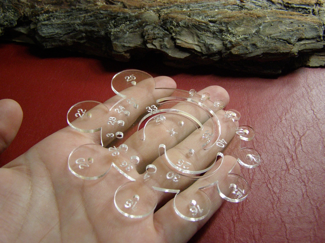 Удобная линейка для разметки окружностей при раскрое, скруглить углы на кошельках, обложках или просто разметить отверстие. Отлично подойдет для раскроя кошельков, сумок и других изделий из кожи.
