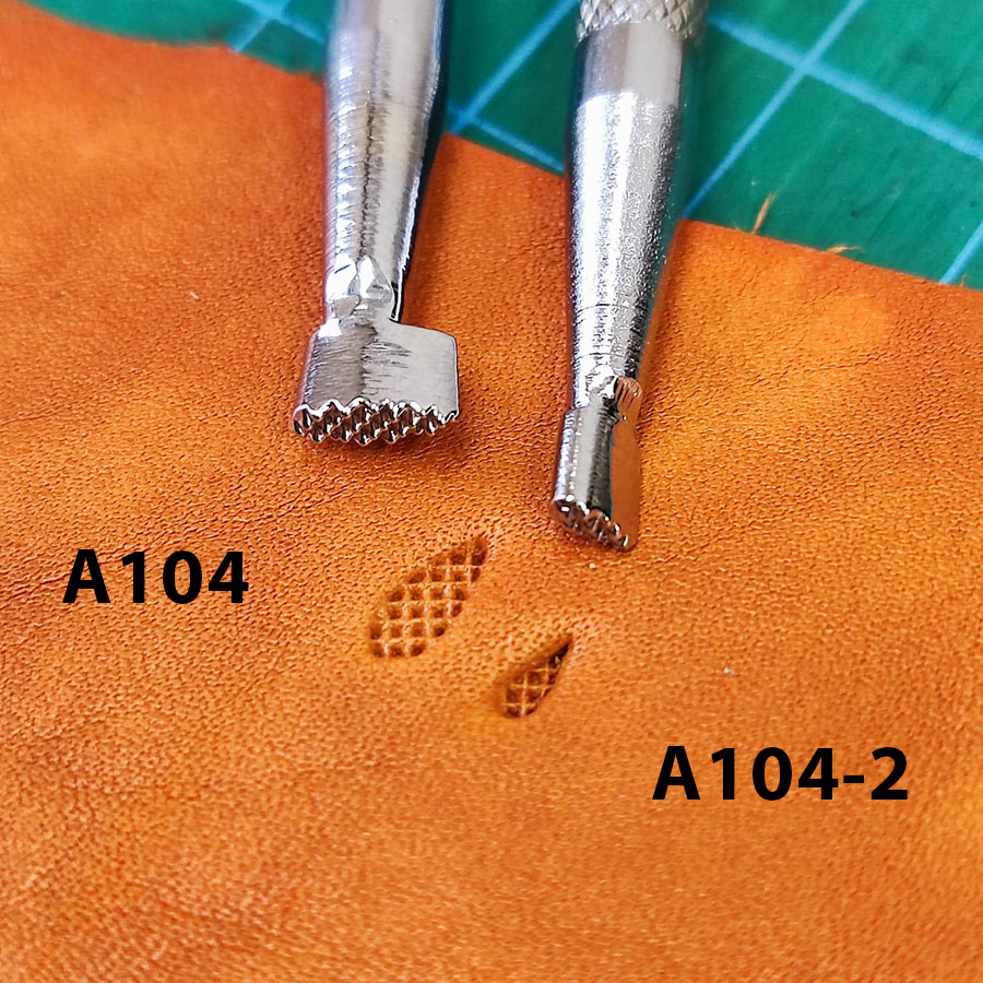Японский штамп для кожевников А 104 размер оттиска 2х6 мм, у штампа А 104-1 размер оттиска 2,7х6,2 мм.
