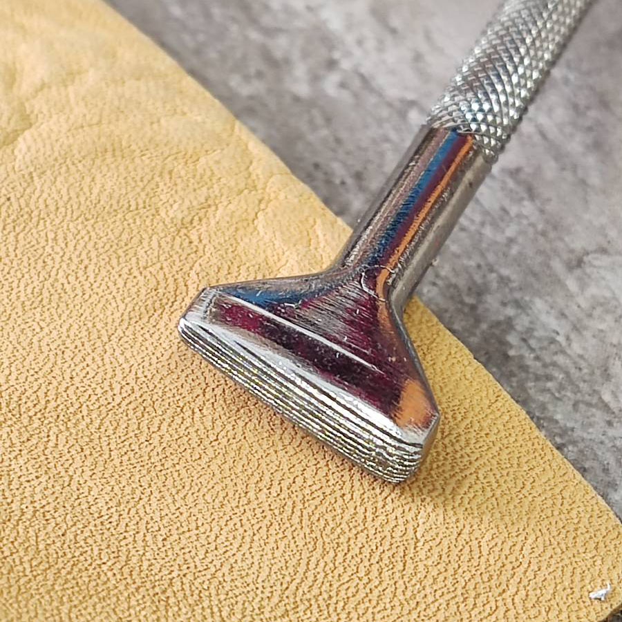 Чтобы штампы прослужили долго, рекомендуется работать с ними на прорезиненном коврике и специальным молотком. Штамп ставится строго перпендикулярно поверхности кожи