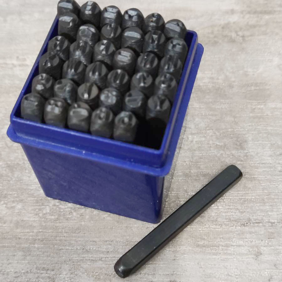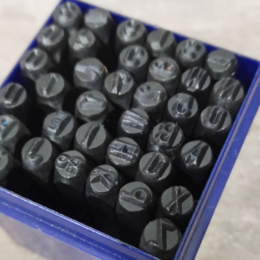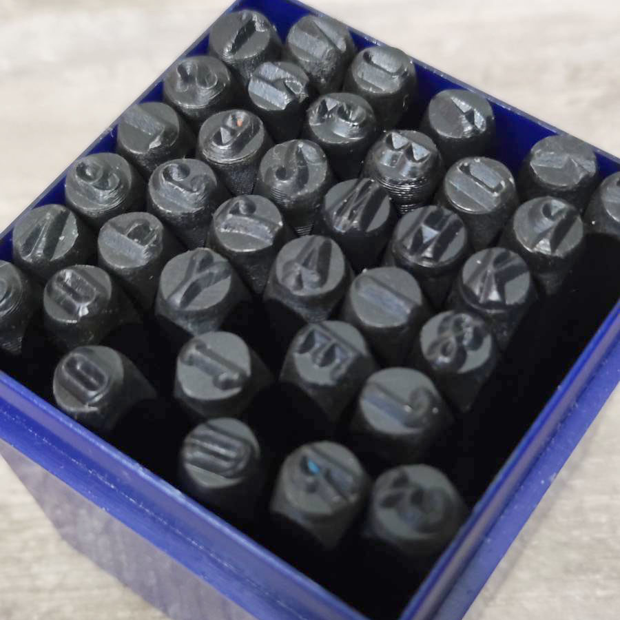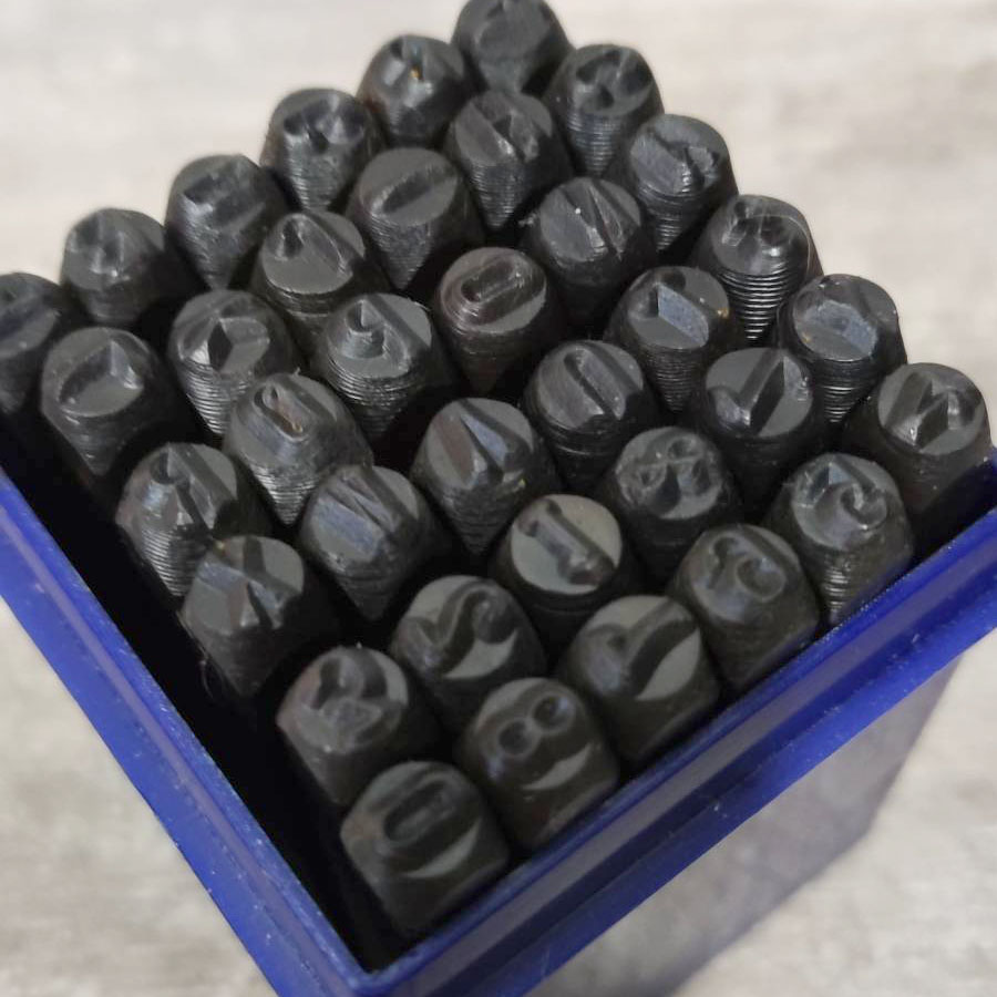 В наборе 27 штампов (буквы латинского алфавита и знак &) и 9 цифр для нанесения логотипов и надписей на коже.