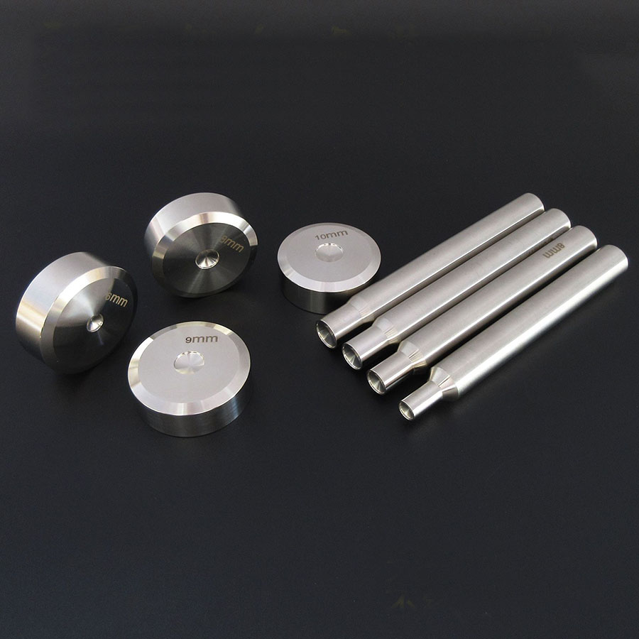 Высококачественный инструмент из полированной нержавеющей стали для установки двусторонни хольнитенов - плашка (основание) и установочный двусторонний стержень (необходимый размер можно выбрать в списке опций)