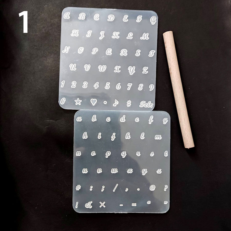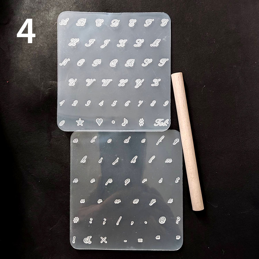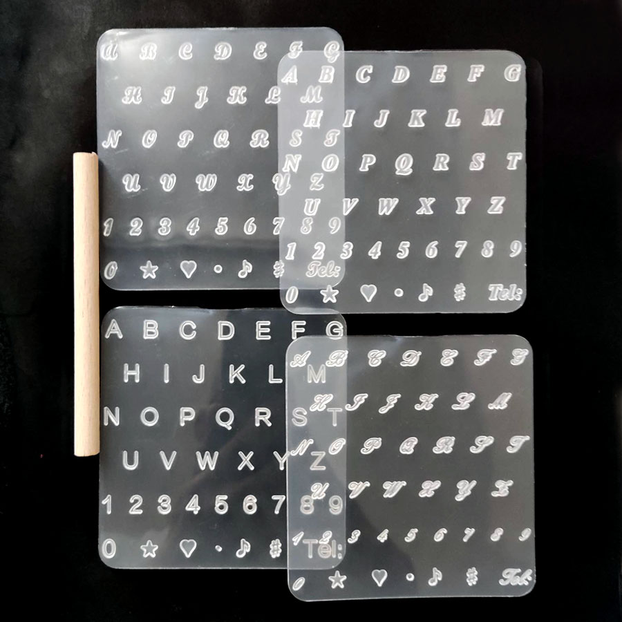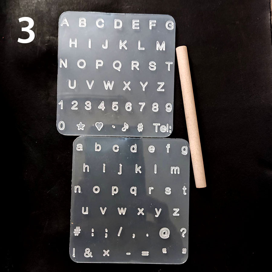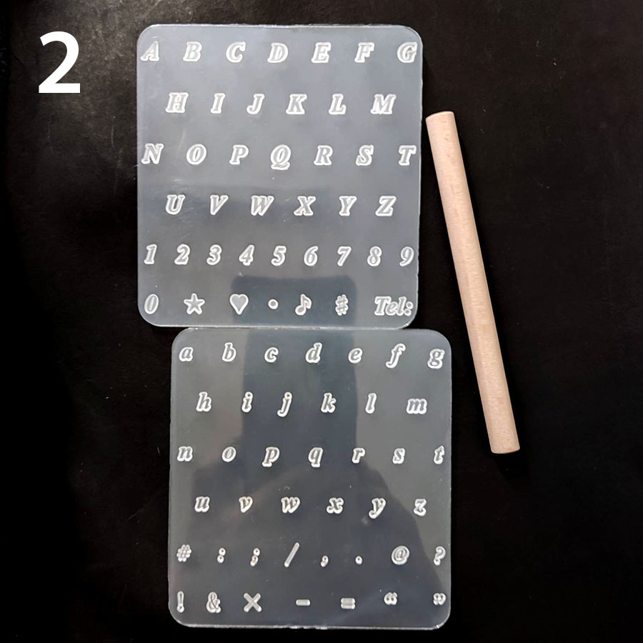 Клише для тиснения с буквами латинского алфавита (заглавные и прописные), цифрами, математическими знаками и несколькими символами (см.на фото).