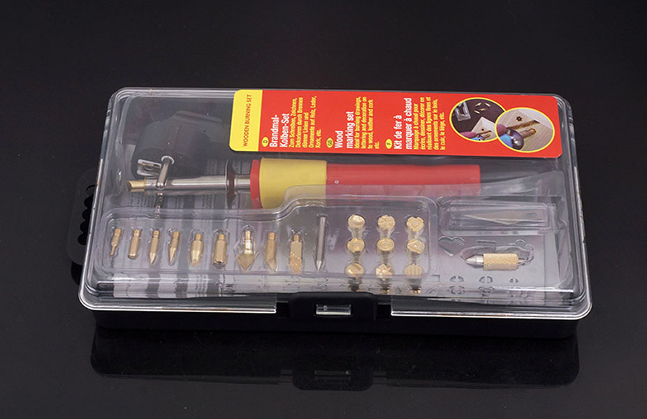 Паяльник с набором насадок разной формы для нанесения надписей, символов, украшений путем выжигания тонких линий, орнаментов по дереву, коже, пробке и др.