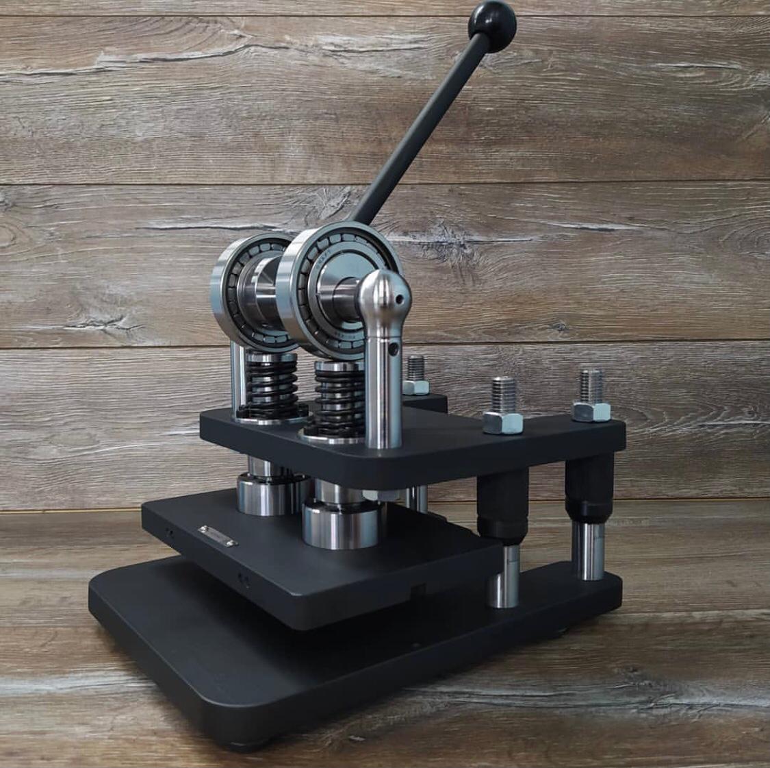 Ручной пресс предназначен для вырубки, холодного тиснения и пробития отверстий. Размер подвижной вырубной плиты 160*250 мм, рассчетное усилие - 1,5-2 тонны.