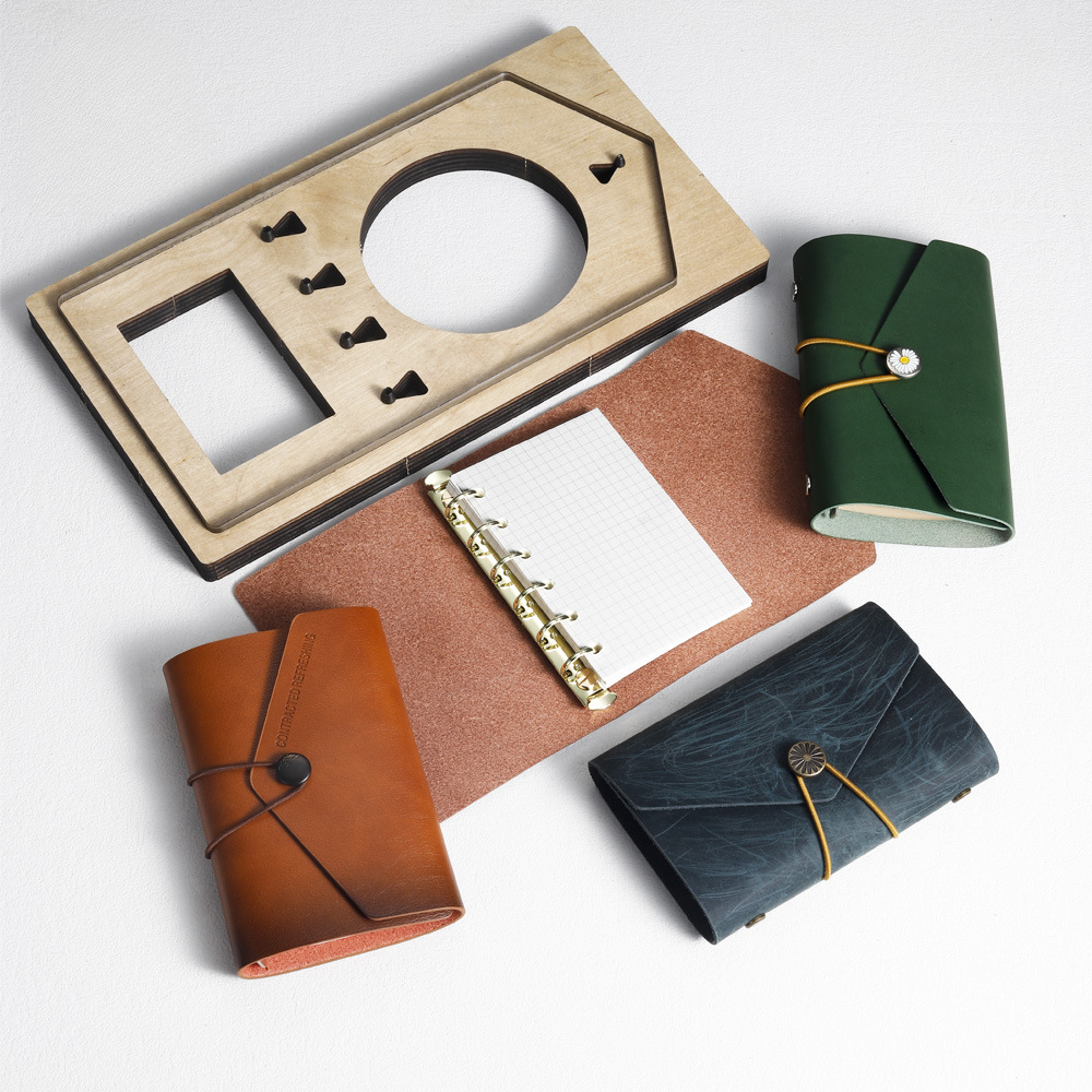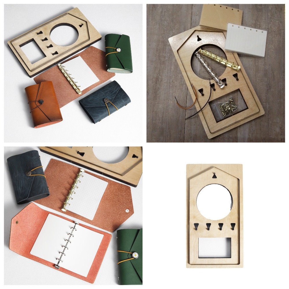 Данная штанц-форма позволяет быстро вырубить из кожи или других плотных материалов детали обложки для блокнота ориентировочно формата А7 .