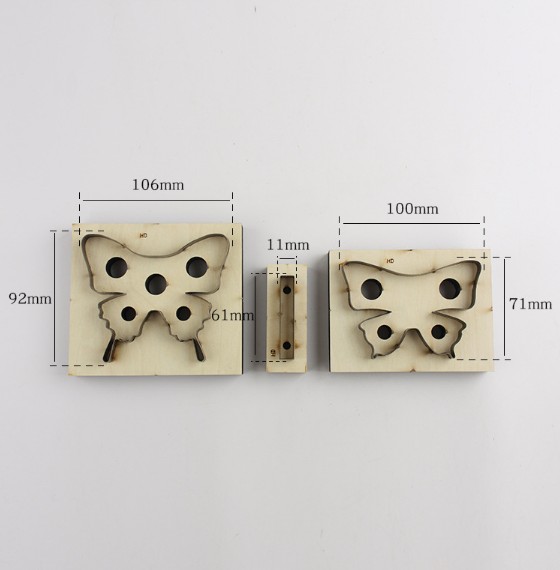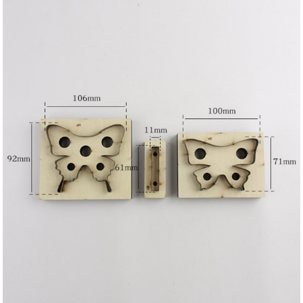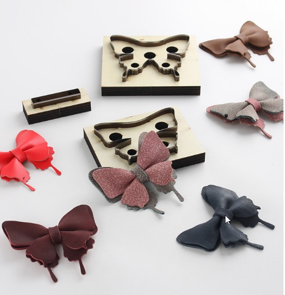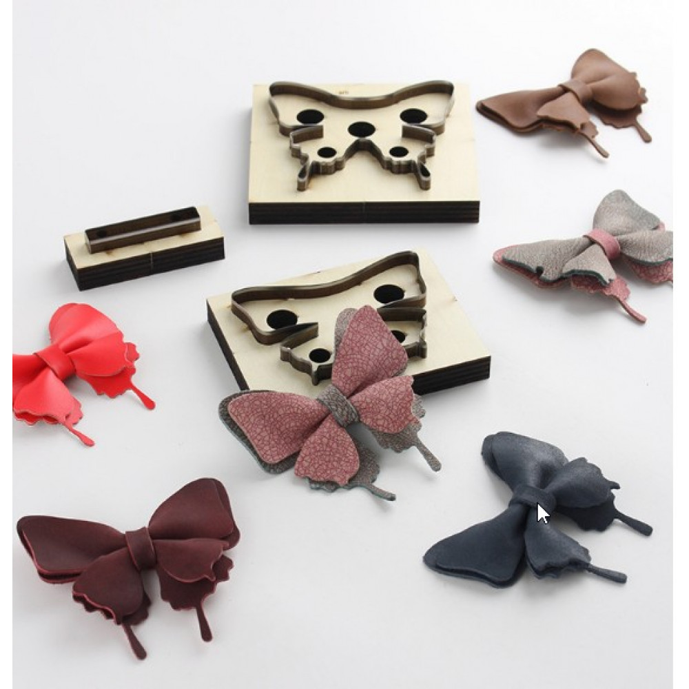 Вырубные штампы-штанцформы на деревянной основе в виде бантика - аппликация для декора сумок, рюкзаков, курток и др. галантерейных изделий. Позволяют получить готовую идеально ровную деталь и значительно сэкономить время на изготовление галантерейного изделия из кожи или других плотных материалов.