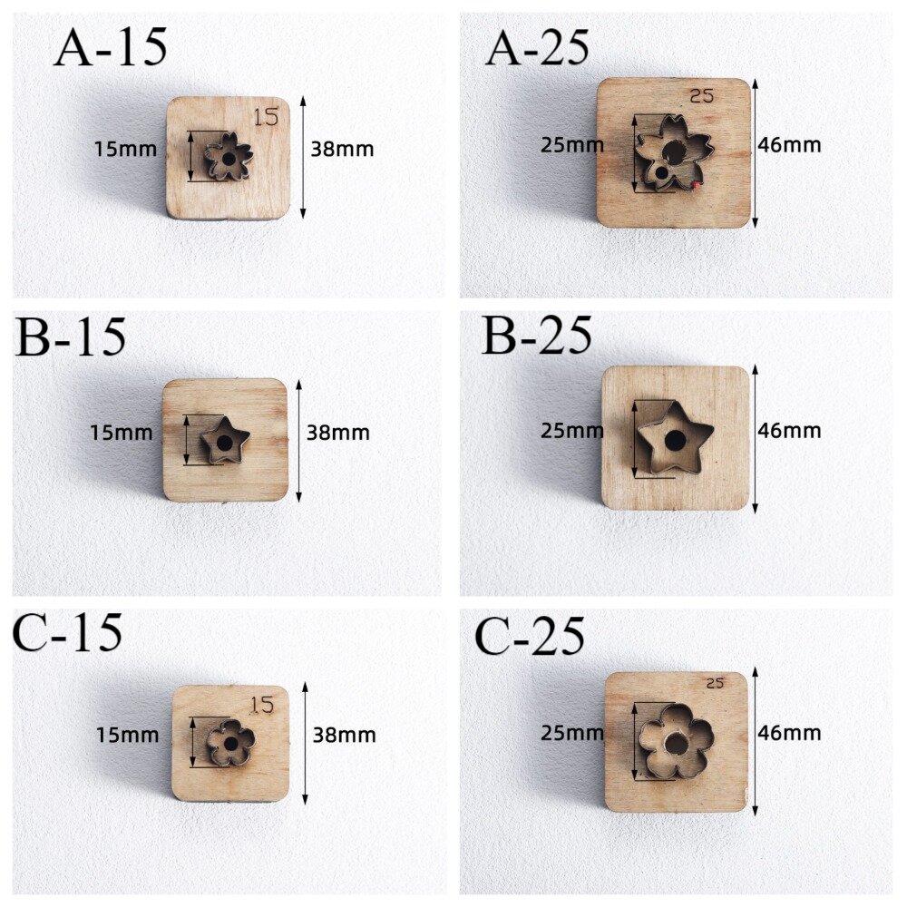 Данная штанц-форма предназначена для вырубки мелких деталей для декора галантерейных изделий в виде цветка и звезд разных размеров.