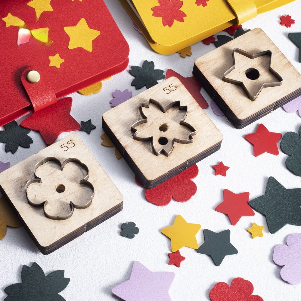 Данная штанц-форма предназначена для вырубки мелких деталей для декора галантерейных изделий в виде цветка и звезд разных размеров.