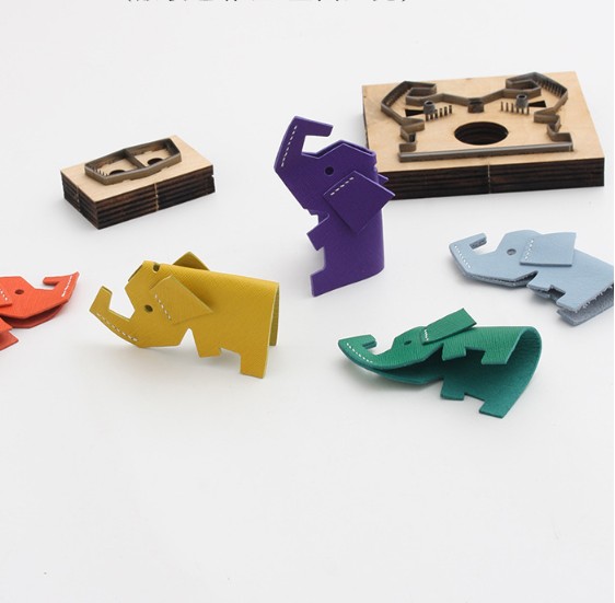 Вырубные штампы-штанцформы на деревянной основе. Позволяют получить не только готовую идеально ровную деталь, но и заготовку, готовую к сшиванию - благодаря вырубке отверстий под шов. После вырубки - остается только сшить детали и быстро получить симпатичную ключницу в виде слоника