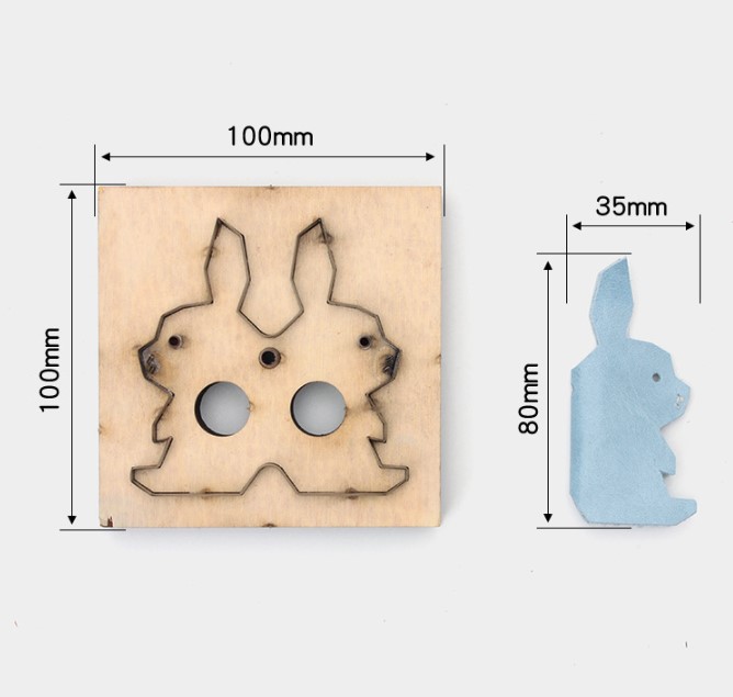 Вырубные штампы-штанцформы на деревянной основе для изготовления брелоков / аксессуаров в виде зайчика. Позволяют получить готовую идеально ровную деталь и значительно сэкономить время на изготовление галантерейного изделия из кожи или других плотных материалов. Отличительная особенность штампа - наличие вставок для высечки отверстий под шов и пробойника круглого диаметра под отверстие! На выходе получается не только ровная, но и готовая для сшивания деталь.
