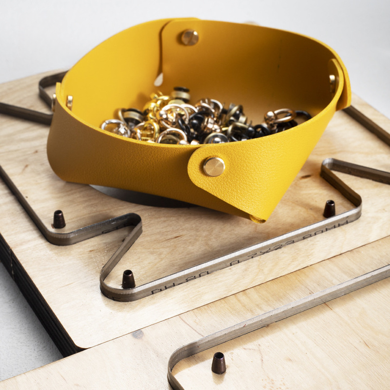 Для вырубки применяется специальный пресс либо Вы можете использовать ПЛАШКУ ДЛЯ ШТАНЦФОРМ и молоток-киянку.