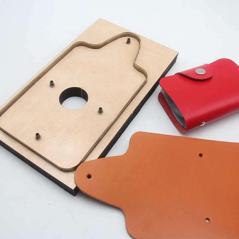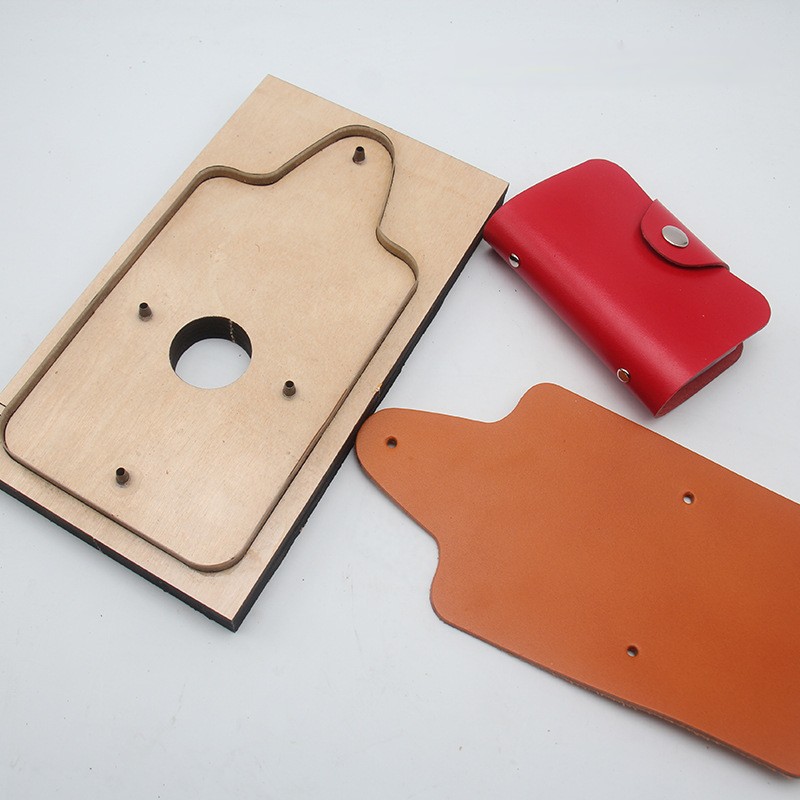 Вырубные штампы-штанцформы на деревянной основе. Позволяют получить готовую идеально ровную деталь и значительно сэкономить время на изготовление галантерейного изделия из кожи или других плотных материалов. Отличительная особенность штампа - наличие вставок для высечки отверстий круглого диаметра! Изделие собирается без швов, при помощи кнопок или хольнитенов. Готовое изделие можно использовать как обложку для картхолдера, визитницы, небольшого блокнота
