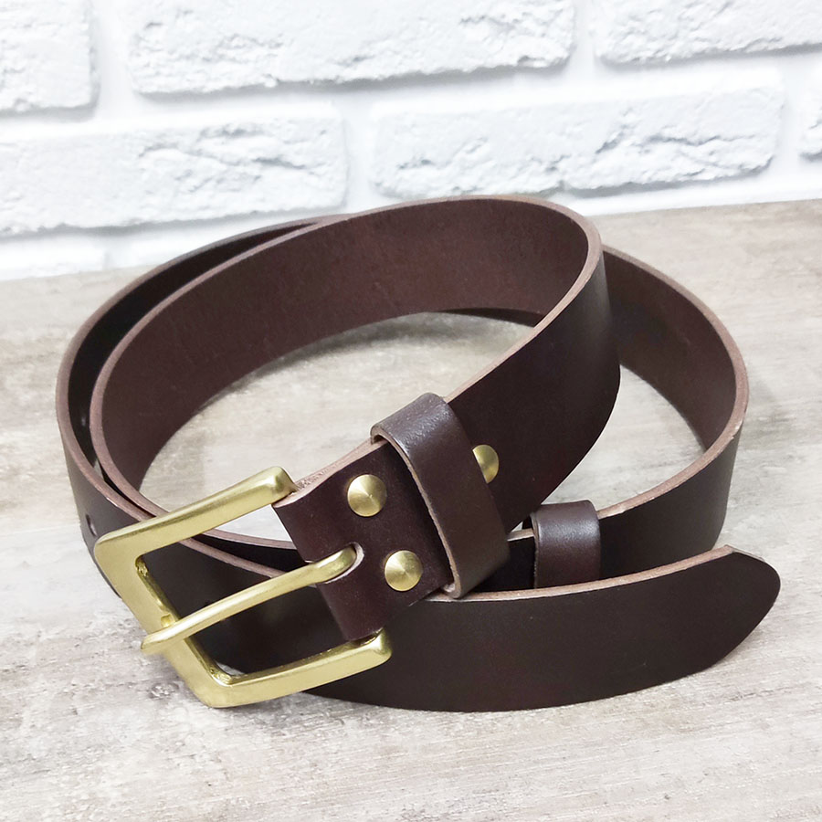 Ремень ручной работы из натуральной кожи с классической пряжкой из латуни. Выполнен из 100% натуральной кожи высокого качества. Натуральная кожа КРС - высокопрочный и износостойкий материал, который прослужит Вам много лет. Данная модель ремня отличается особой прочностью, повышенной устойчивостью к деформациям и стиранию.