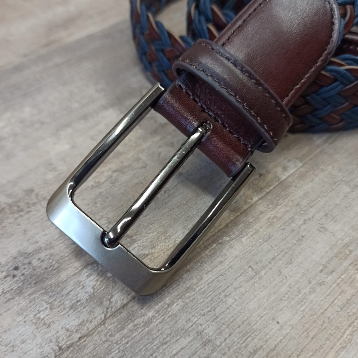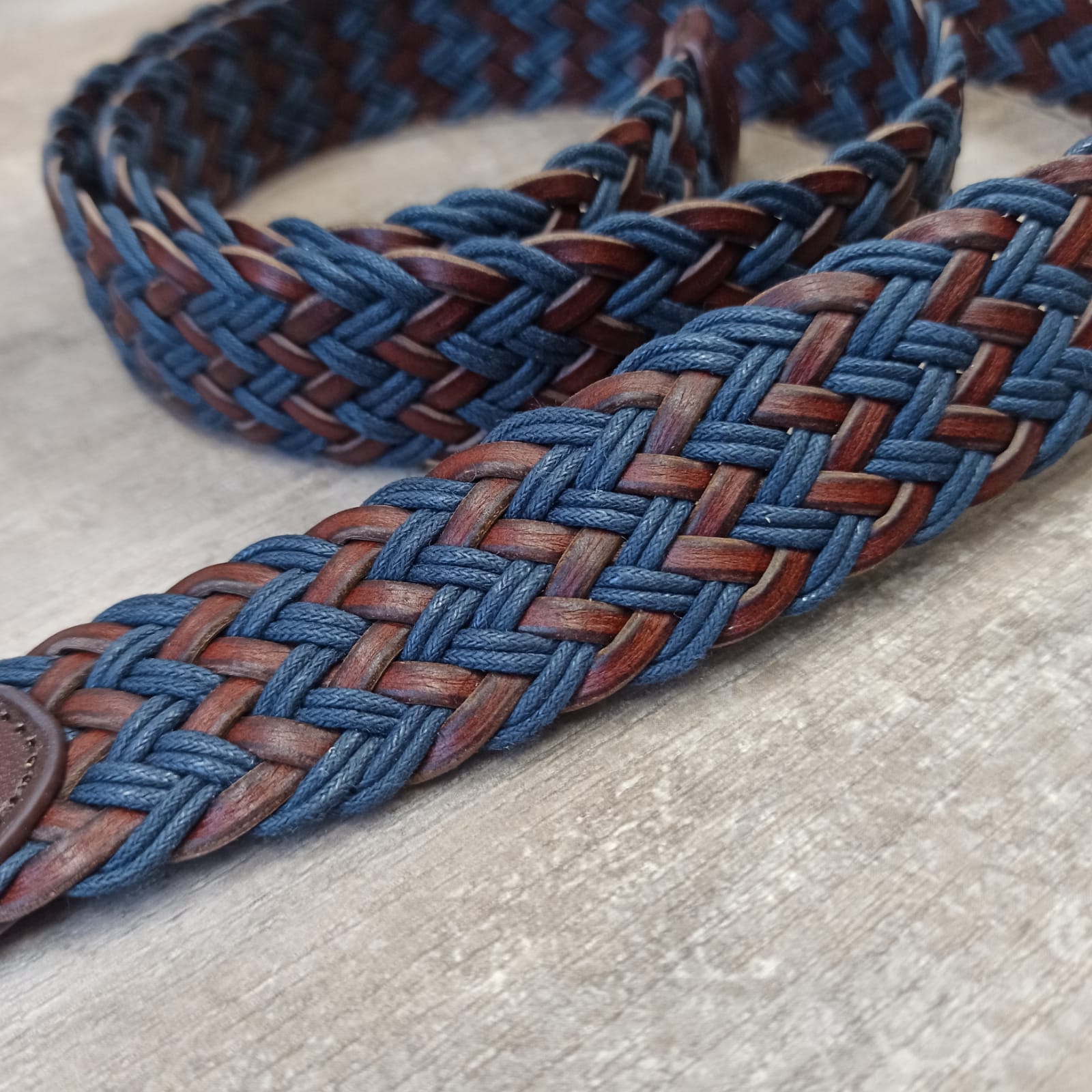 Плетеный ремень из натуральной кожи и вощеного хлопкового шнура с классической металлической пряжкой. Выполнен из 100% натуральной кожи высокого качества.