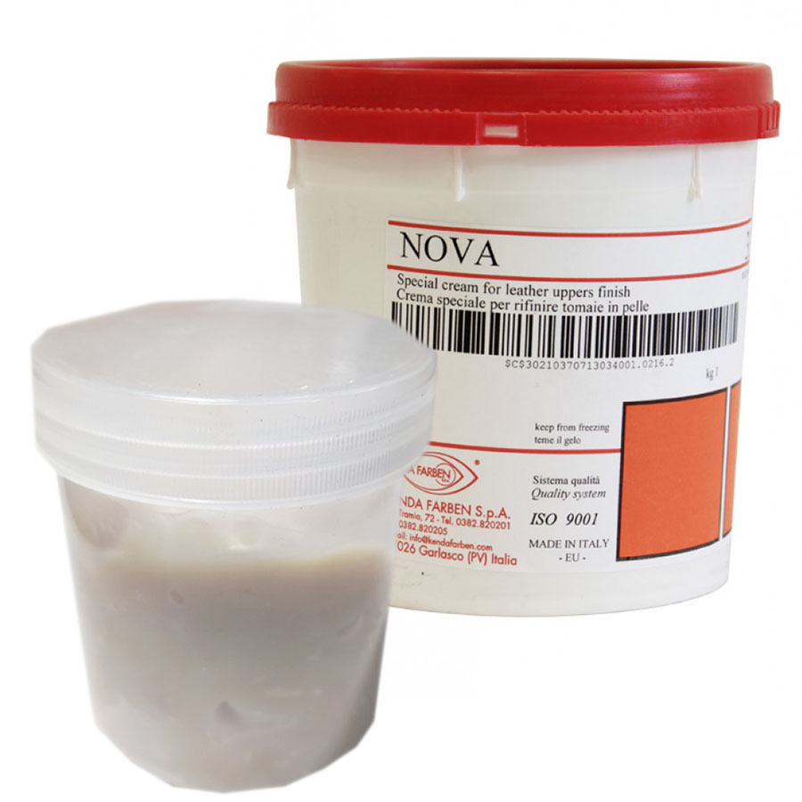 NOVA – крем на водной основе для финишной отделки всех типов кож с эффектом сильного блеска, прекрасно закрывает поры кожи, имеет высокую эластичность и устойчив к воздействию воды. На коже, обработанной кремом NOVA , не остается пятен от воды и она не теряет блеск.