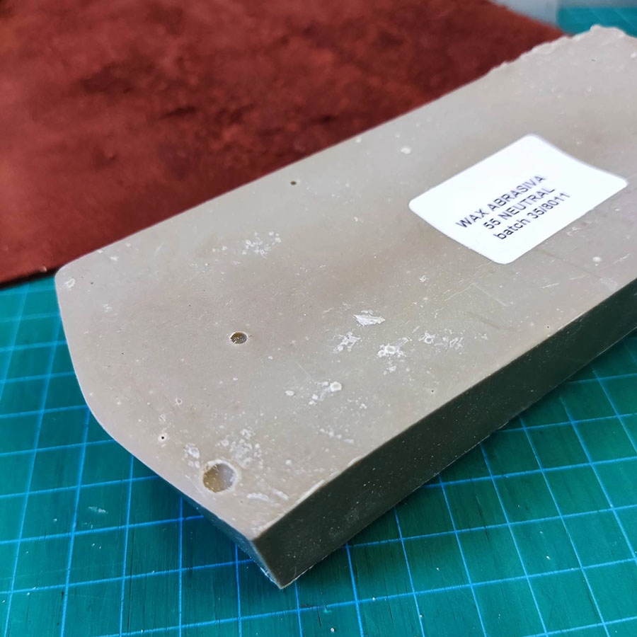 WAX ABRASIVA – абразивный воск для шлифования верха кожаных изделий, особенно рекомендуется для работы с крастом. Способ применения: использовать с х/б полотняной щеткой на скорости 800 -1000 об/мин.