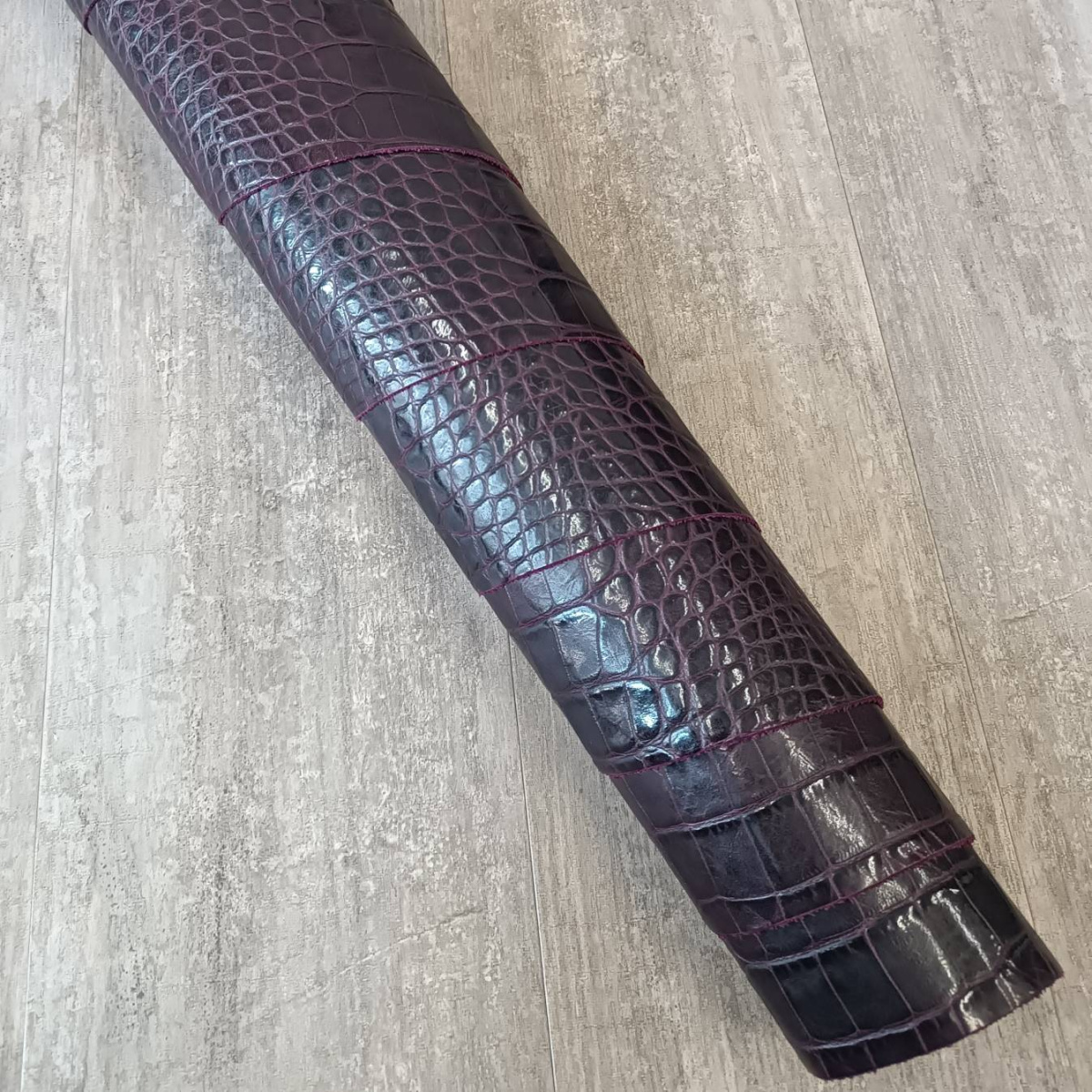 Кожа КРС хромового дубления с тиснением плитой под каймана. Кожа тонкая, плотная. Лицо гладкое, оригинальный цвет и узор.
