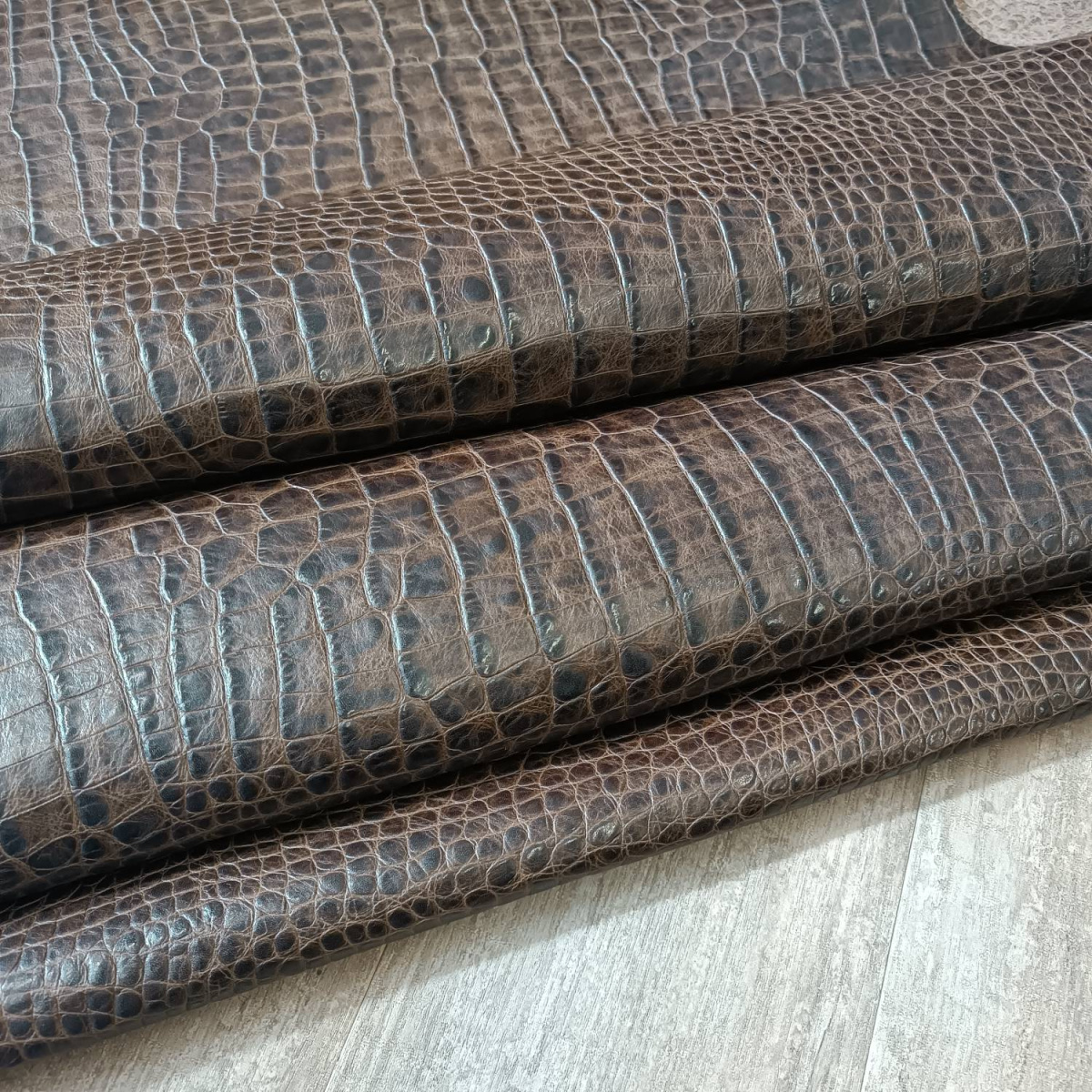 Кожа КРС хромового дубления с тиснением плитой под каймана. Кожа тонкая, плотная. Лицо гладкое, оригинальный цвет и узор.