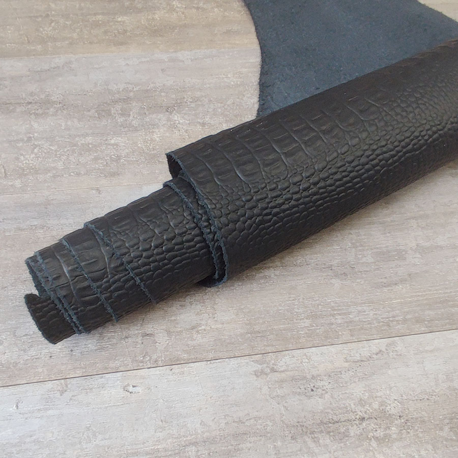 Кожа КРС хромового дубления с тиснением плитой под крокодила. Кожа тонкая, плотная. Лицо гладкое, яркий цвет и узор.
