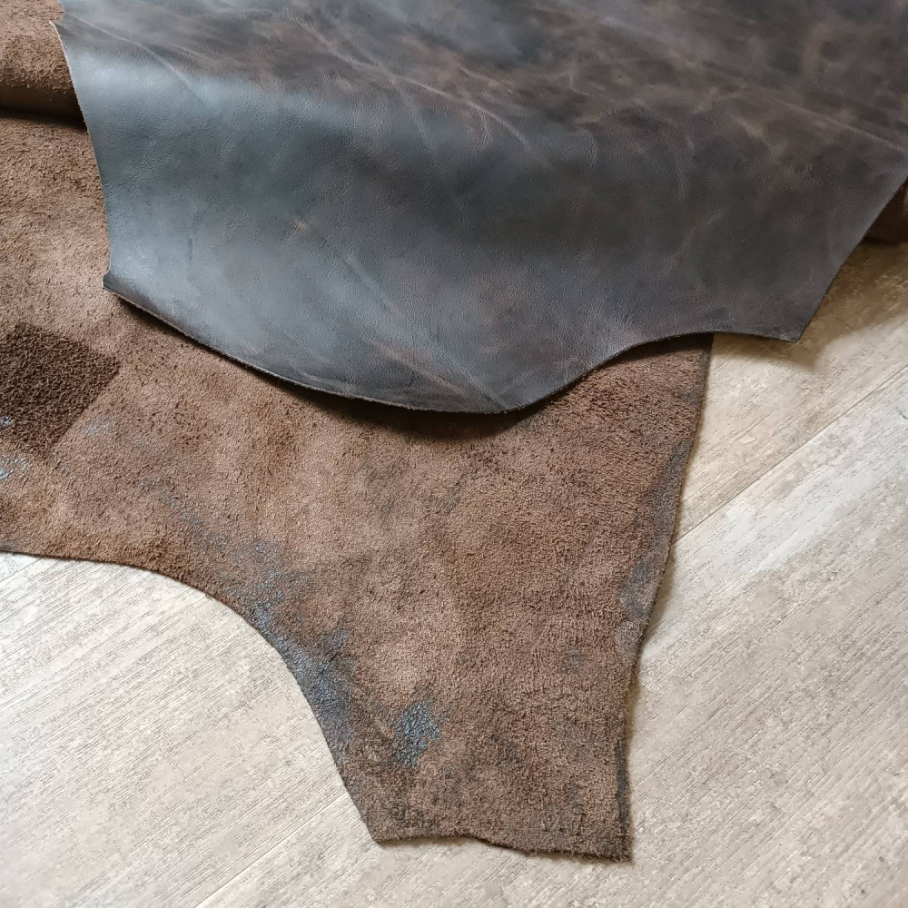 Кожа продается в конфигурации полукожа - в списке опций указаны размеры конкретных шкур в дециметрах, которые имеются в наличии. Возможна нарезка на 1/2 полушкуры (стоимость 1 дм2 увеличивается)