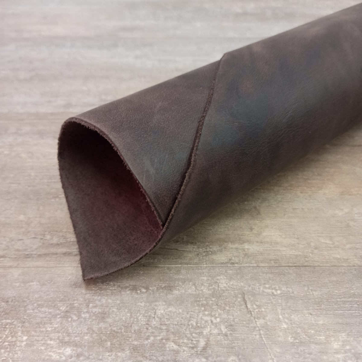 Кожа плотная, эластичная, прочная, лицо приятное на ощупь. Кожа крейзи хорс отлично подойдёт для широкого круга изделий, ручного и машинного шитья.