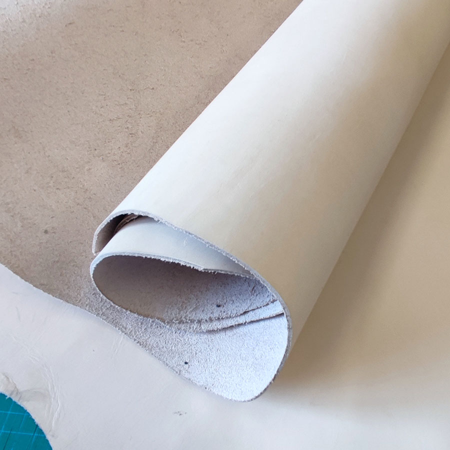 Кожа растительного дубления, не окрашенная, без финиша. Бахтарма ровная. Лицо гладкое, темнее чем Дакка.