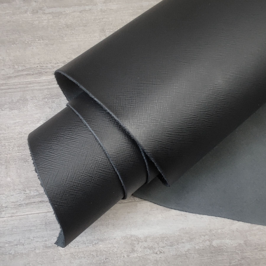 Кожа КРС хромового дубления - лицевая, с тиснением Сафьяно. Благодаря этой текстуре с диагональным мелким тиснением кожа приобретает высокую прочность и устойчивость к истиранию, царапинам. Кожа с финишным покрытием