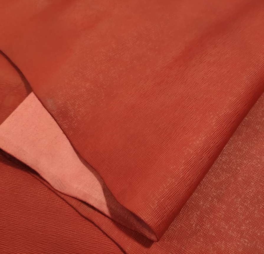 Итальянская кожа КРС хромового дубления - лицевая, с тиснением Сафьяно. Благодаря этой текстуре с диагональным мелким тиснением кожа приобретает высокую прочность и устойчивость к истиранию, царапинам. Кожа с финишным покрытием