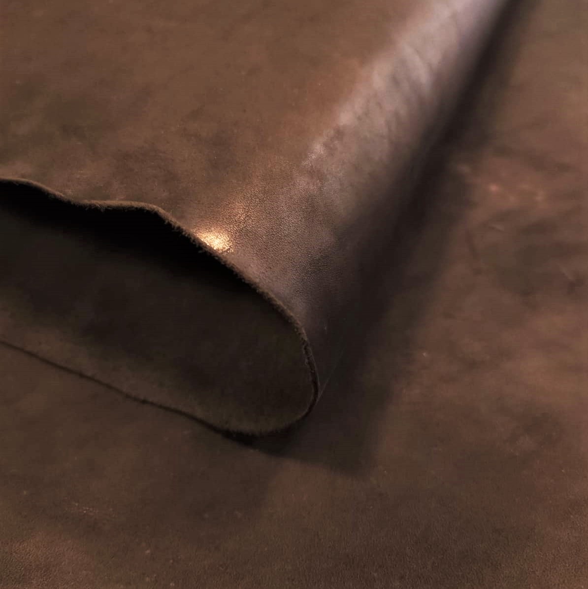 Шорно-седельная юфть барабанного крашения (сквозной окрас), без покрытия.