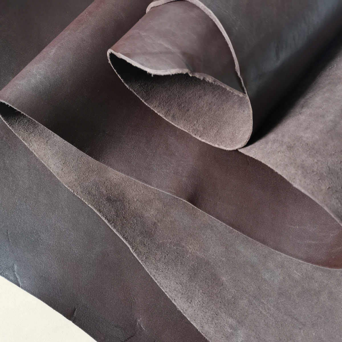 Шорно-седельная юфть барабанного крашения (сквозной окрас). Без покрытия. Цвет: Горький шоколад