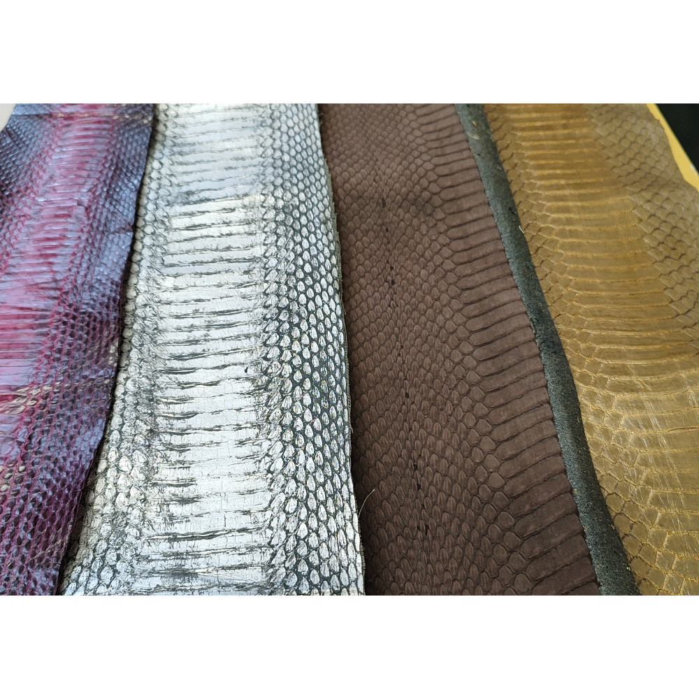 Змеиную кожу используют в качестве декоративных элементов при пошиве галантерейных изделий, а также как самостоятельный материал при изготовлении украшений, колье, браслетов, часовых ремешков, чехлов для телефона и других кожаных аксессуаров.